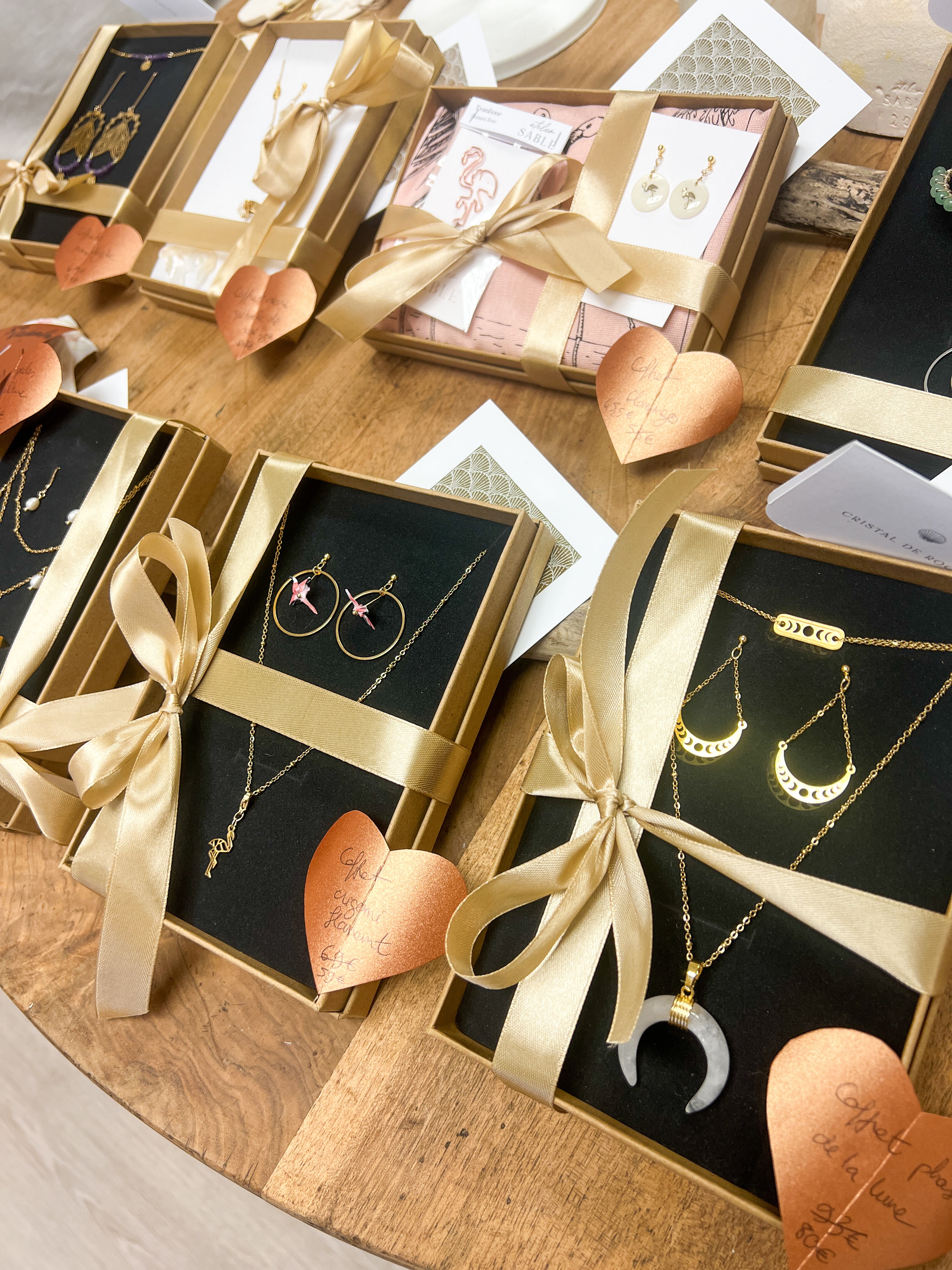 " Quel bonheur d'avoir commandé à nouveau chez vous! Les bijoux sont sublimes, j'adore, réalisés avec des doigts de fée. Je ne quitte plus le collier Sirène et les boucles sont très belles, fidèles à la photo. L'envoi est rapide et le colis préparé avec soin. N'hésitez plus à vous faire plaisir"