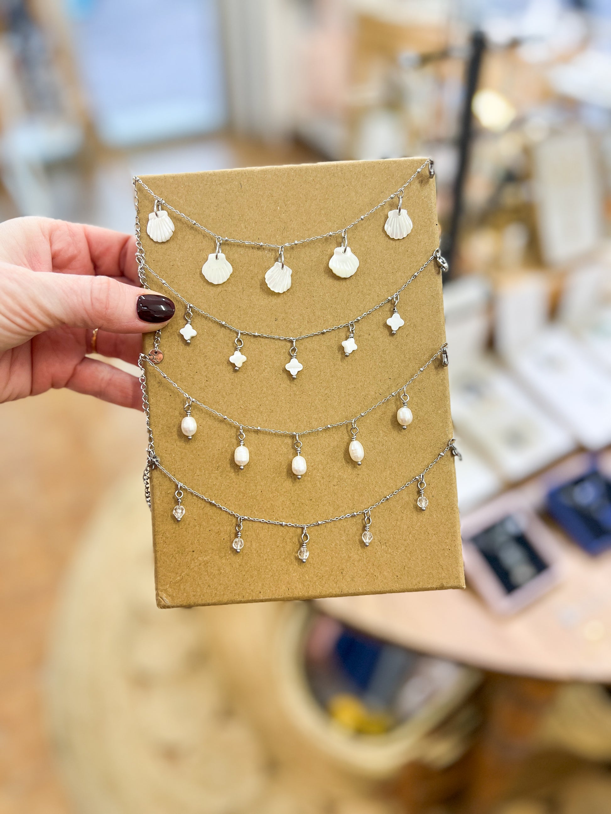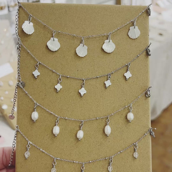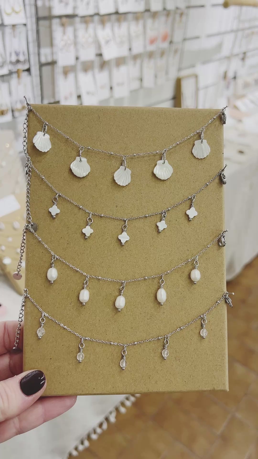 Adjustable size. The chains are made of stainless steel and will not discolor over time.