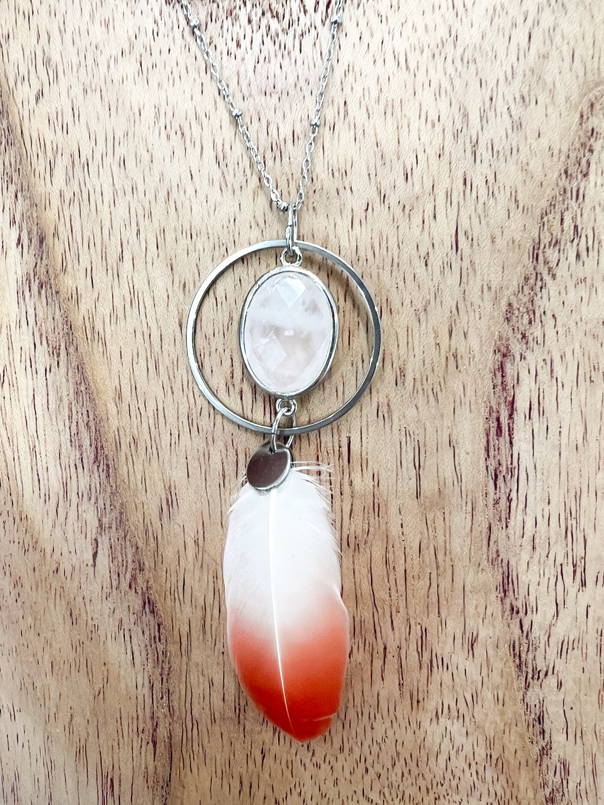 Flamingo and Rose Quartz Necklace