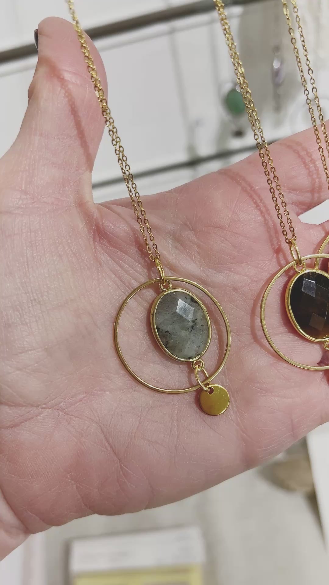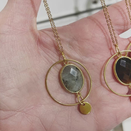 Stone size approx. 33x8 mm The chain and findings are made of stainless steel and will not discolor over time. Please note that the crystal attachment is not stainless steel and should avoid contact with water. Materials: Stainless steel chain and fittings Semi-precious stone pendant All my jewelry is sent in pretty packaging and is created and made by me (with love, of course!).