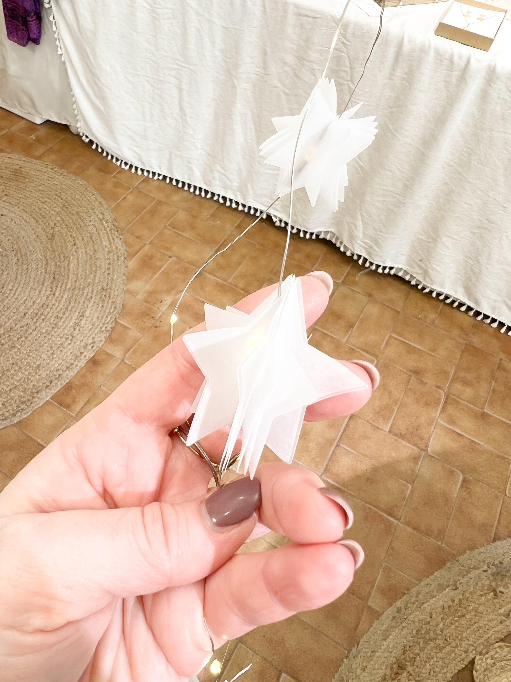 Une jolie guirlande lumineuse avec 4 étoiles en papier calque donnant un effet féerique.