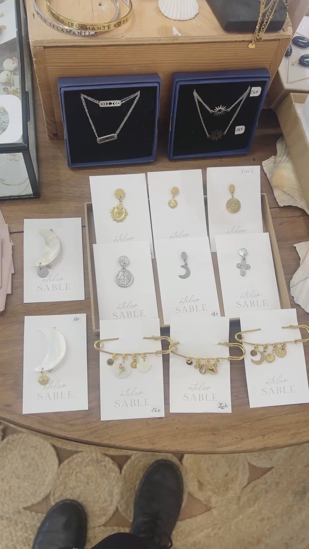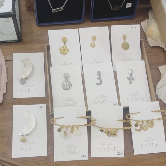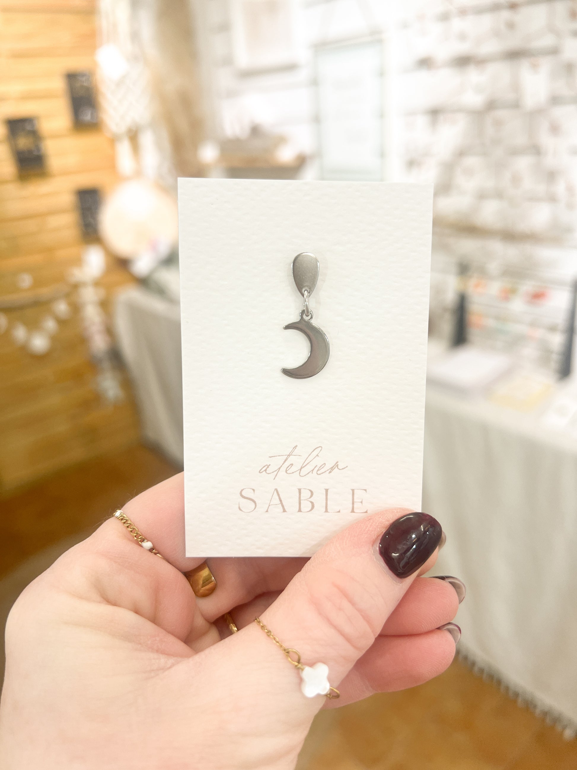 Une délicate broche en inox argenté avec un joli pendentif lune.