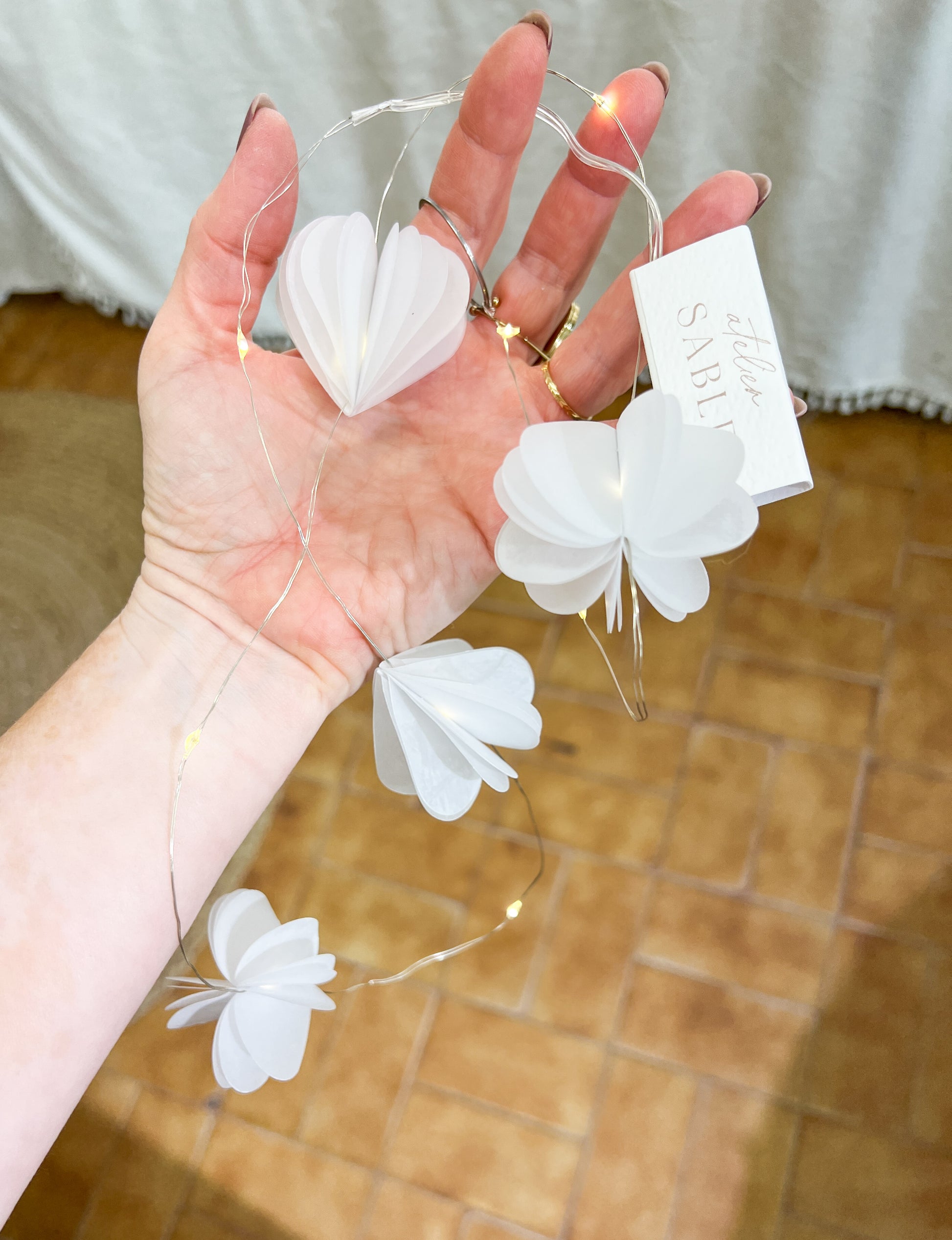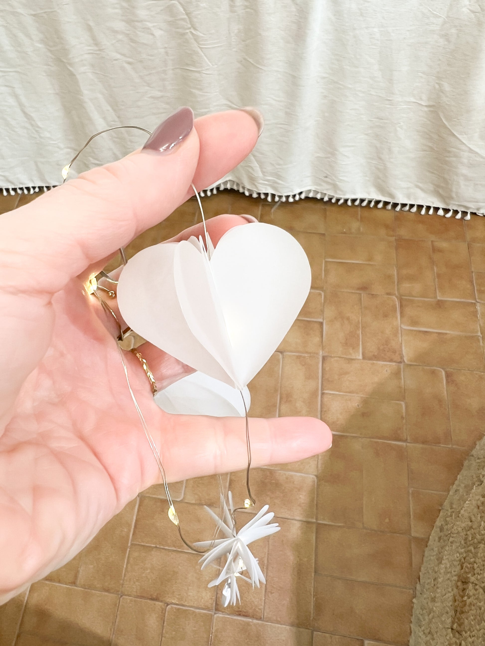 Une jolie guirlande lumineuse avec 4 cœurs en papier calque donnant un effet féerique.